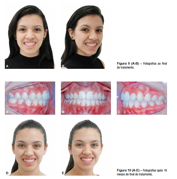 A satisfação da paciente e de seus responsáveis e a possibilidade de proporcionar um tratamento ortodôntico associado aos conceitos de proporção áurea valorizam o resultado final. Deve ser destacado que além dos resultados estéticos, houve melhora significativa na oclusão da paciente com um correto trespasse horizontal e vertical ao final do tratamento